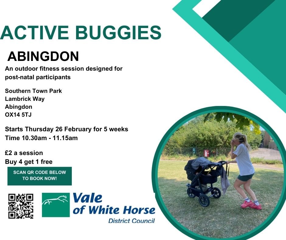 Active Buggies is a free fitness session for parents with young children, designed for post-natal participants.