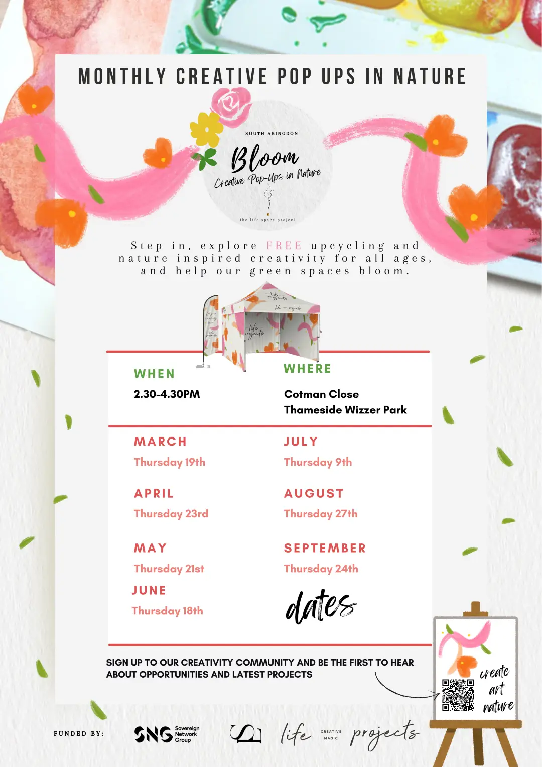 Step in, explore FREE upcycling and nature inspired creativity for all ages and help our green spaces bloom