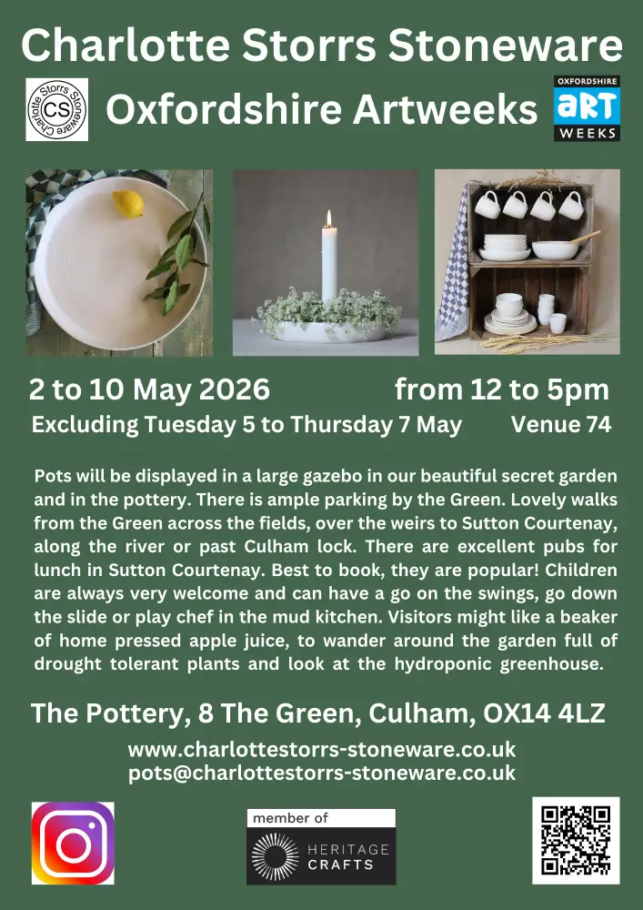 Charlotte Storrs Pottery open during Oxfordshire Artweeks