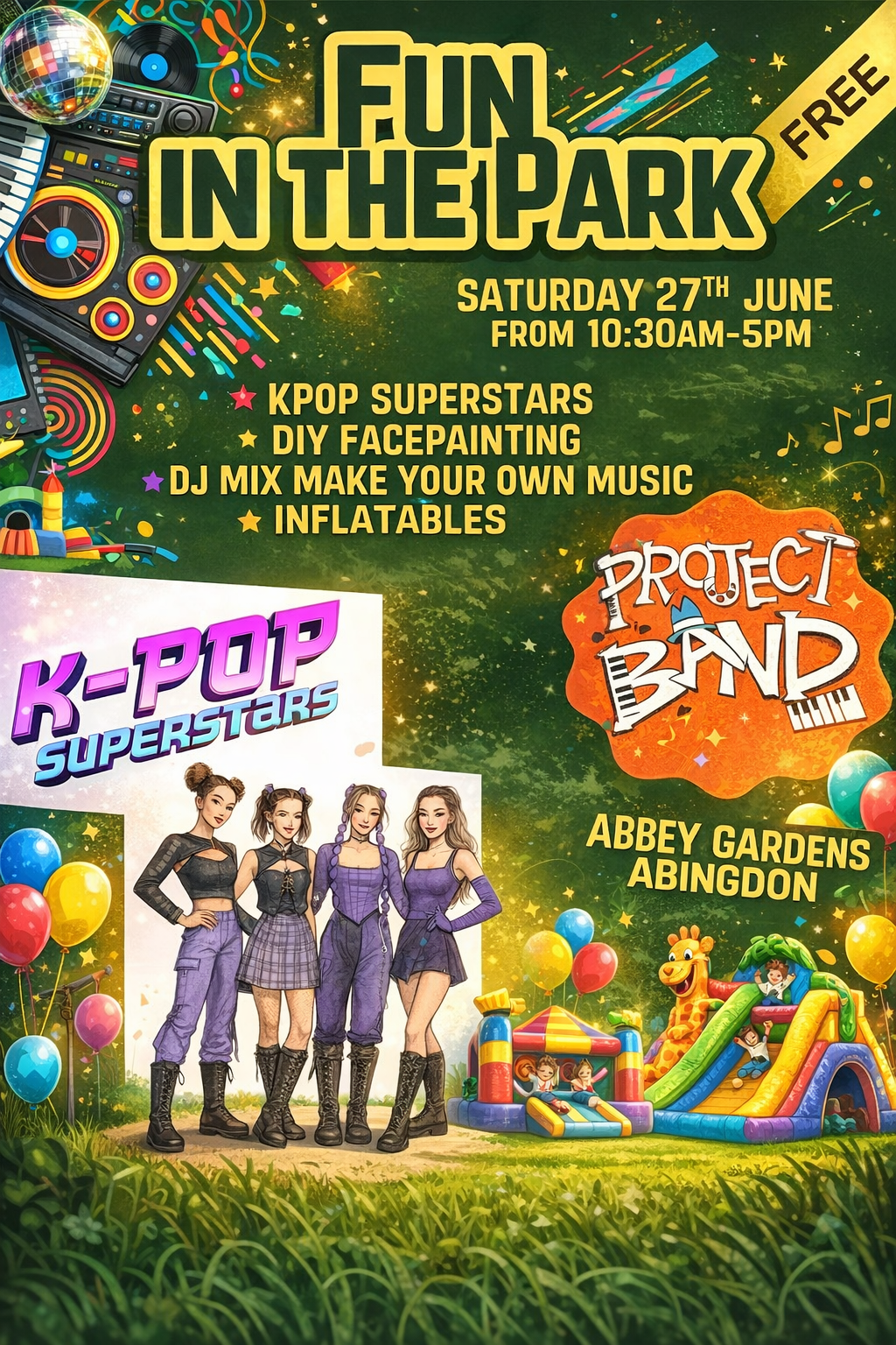 Get ready for a fantastic FREE daytime festival on Saturday 27th June in the beautiful Abbey Gardens, Abingdon!
