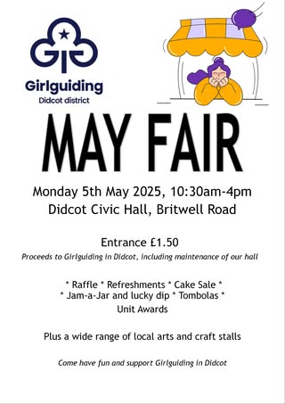 Join our annual May fair with ,lots of activities for children provided by Didcot Brownies & guides, local craft stalls, refreshments