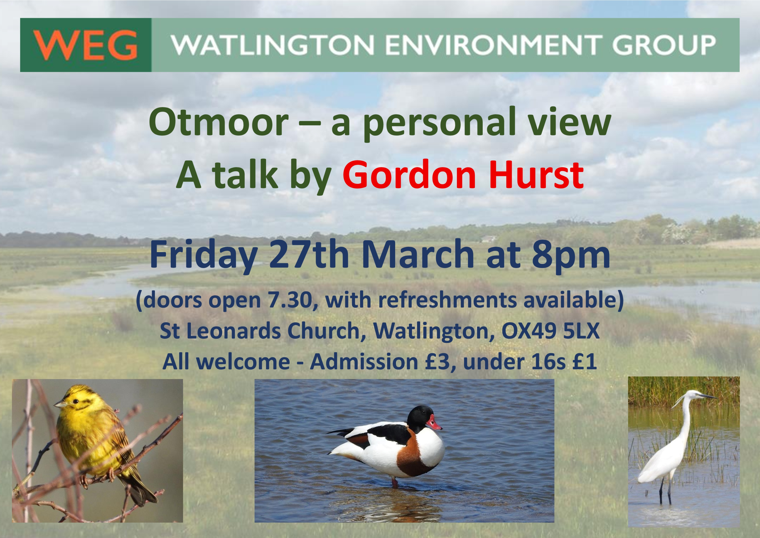 A talk to Watlington Environment Group about the RSPB Otmoor reserve, near Oxford, given by Gordon Hurst, a passionate advocate for Otmoor, as both a keen birder and a volunteer helping to maintain and improve the reserve.