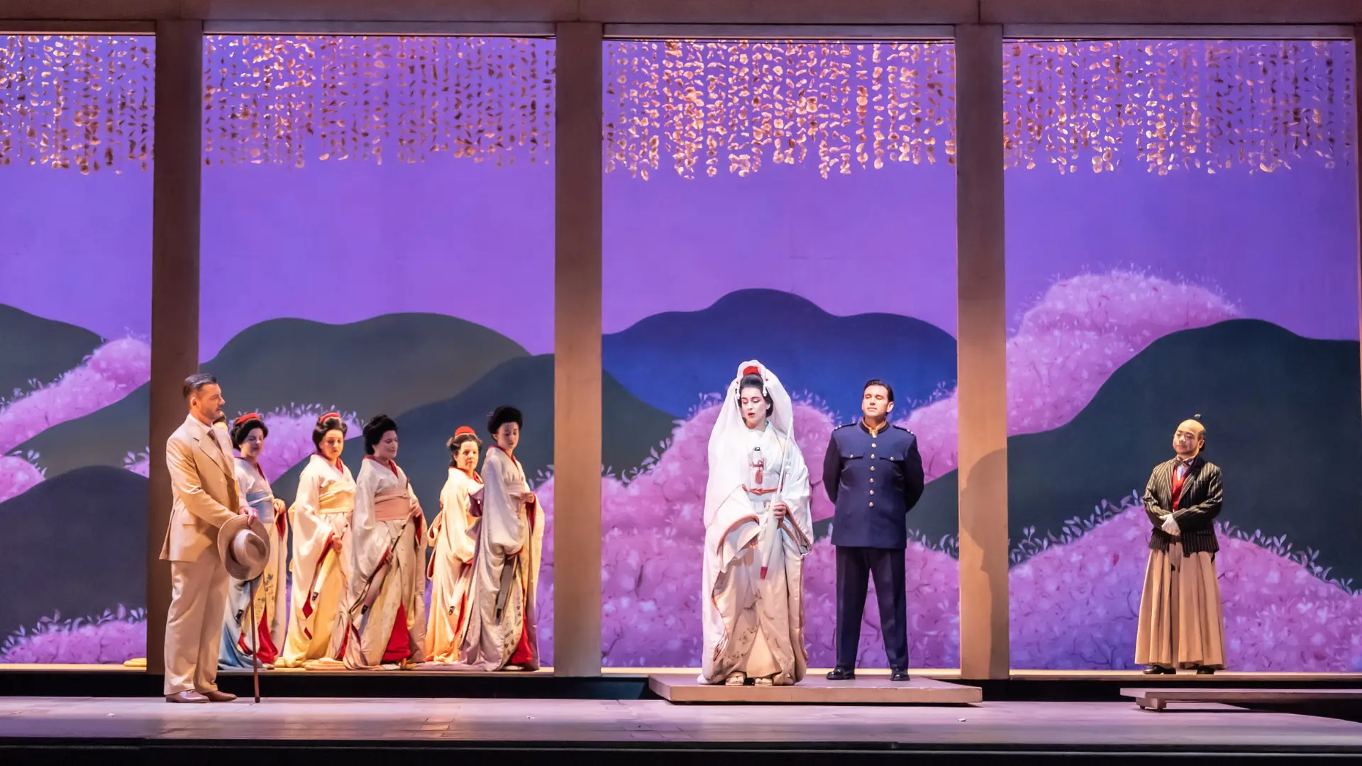 Asmik Grigorian (Cio-Cio-San); Joshua Guerrero (Lieutenant B. F. Pinkerton); Lauri Vasar (Sharpless); Hongni Wu (Suzuki); Ya-Chung Huang (Goro); Jeremy White (The Bonze); Josef Jeongmeen Ahn (Prince Yamadori); Veena Akama-Makia (Kate Pinkerton); Romanas Kudriašovas (Imperial Commissioner)