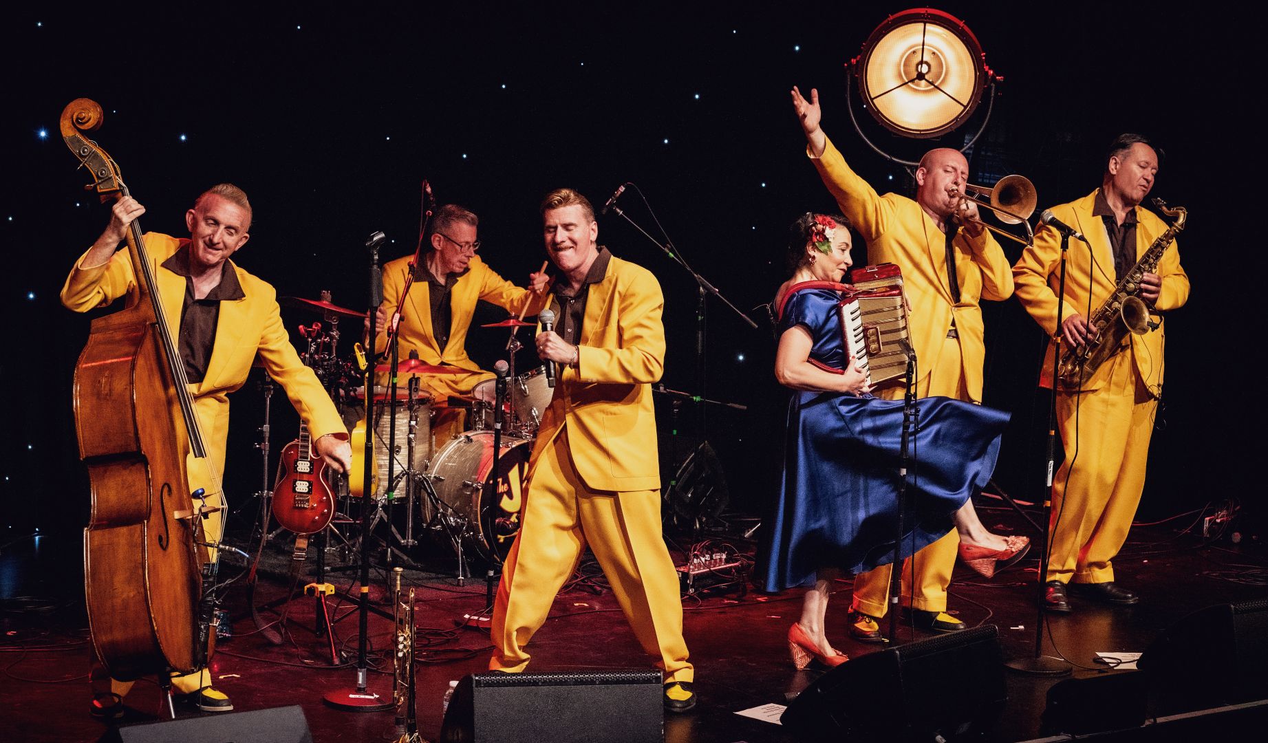 For 30 years they’ve have been taking their infectious tunes to over 40 countries and continuously proving why they are the UK’s No.1 jive and swing band. They effortlessly transition from smooth-as-butter ballads to rip-roaring rhythm & blues, with a nod to the raw, foot-stomping roots of rock ‘n’ roll. They’ve played for the Queen, packed out the Royal Albert Hall, and made history as the first band to get to the Britain’s Got Talent finals.